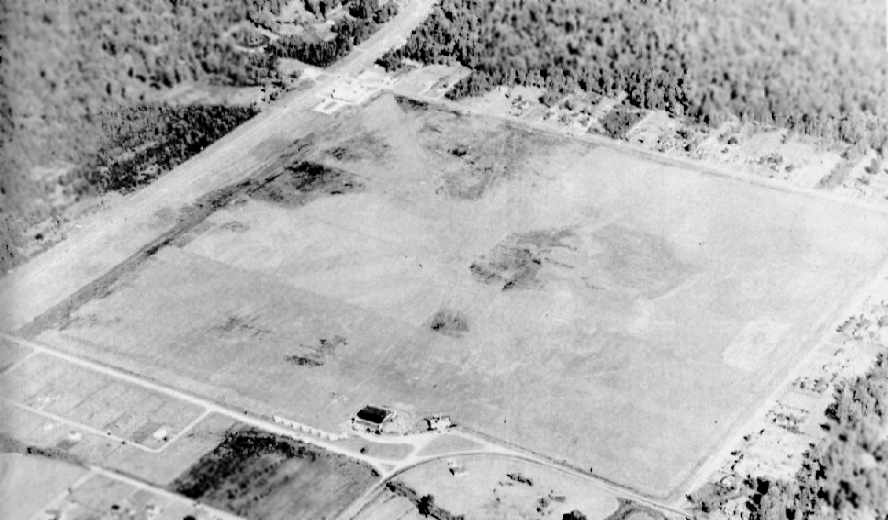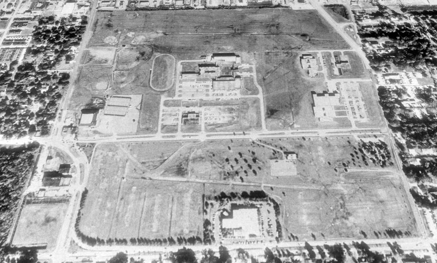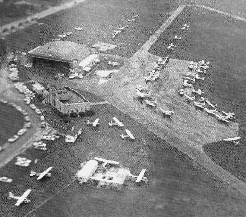 An aerial view looking north at the original Baton Rouge Municipal Airport,