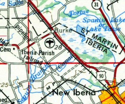 Iberia Parish Airport, as depicted on the 1956 USGS topo map.