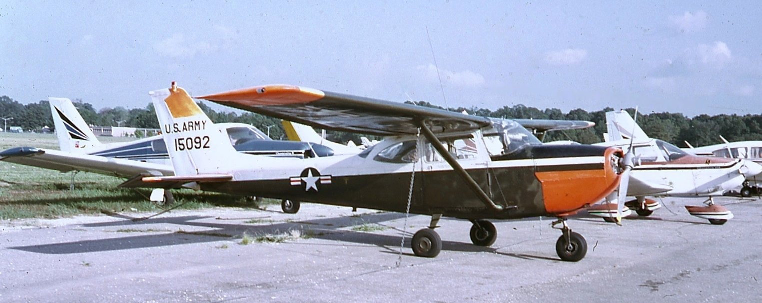 A 1974 photo of Carl Hennigan taking off from Baton Rouge Downtown Airport's Runway 3 in a Cessna 150.