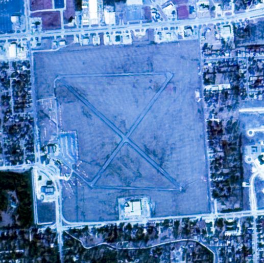 but the distinctive square area of the former airport remained quite recognizable, as it had become a complex of athletic fields.