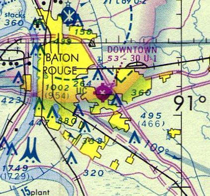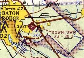 The last aeronautical chart depiction which has been located showing the Baton Rouge Downtown Airport while in operation