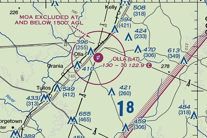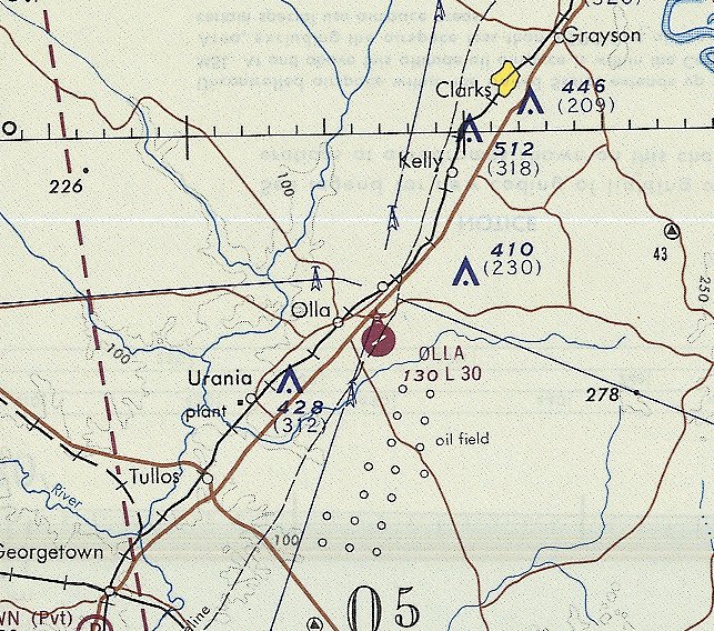 Olla Airport was not yet depicted on the September 1967 Beaumont Sectional Chart.
