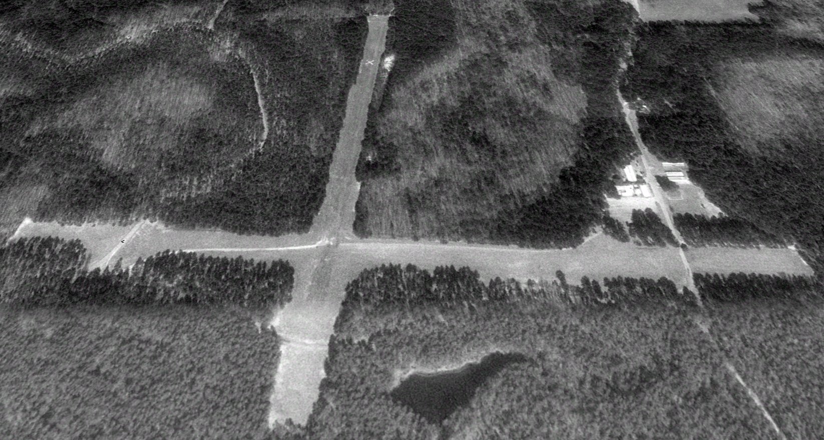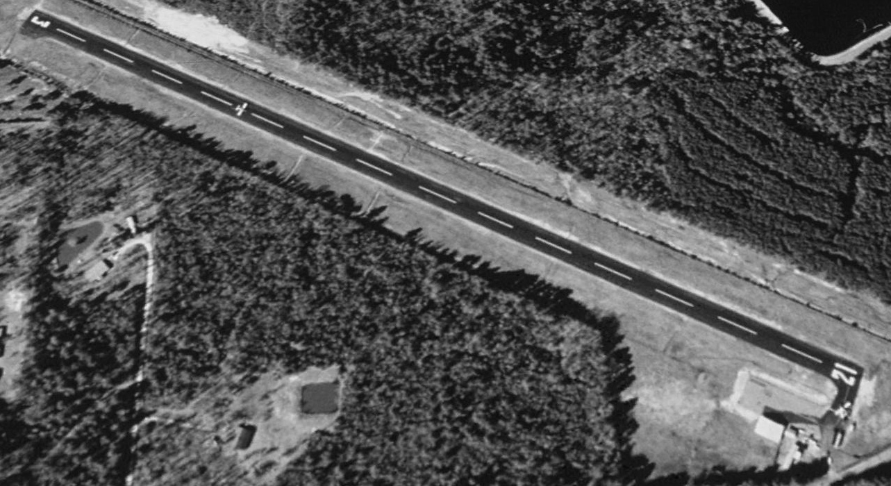 as a 1997 USGS aerial view looking southeast showed the runway marked with closed “X” symbols.