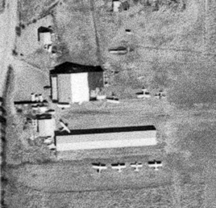 A closeup from the 2/12/69 USGS aerial view depicted a total of 8 light single-engine planes parked around the Lucien Field hangars.