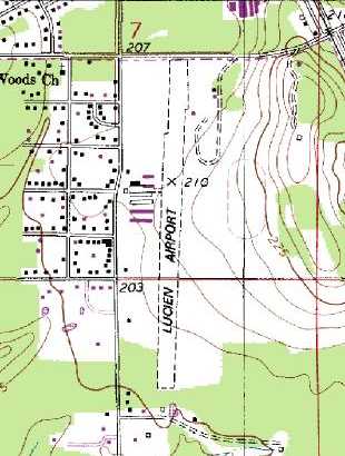 The 1992 USGS topo map depicted Lucien Airport as having a single unpaved north/south runway,