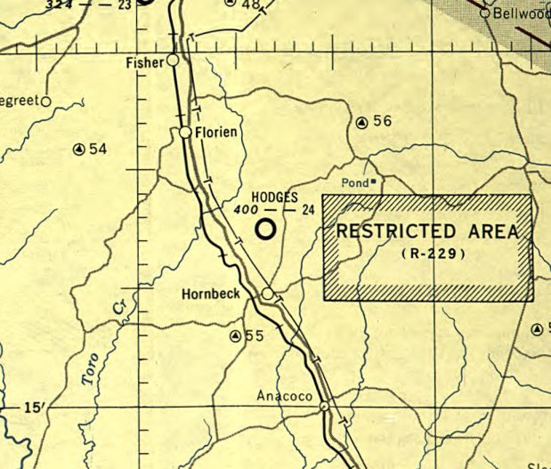 The last aeronautical chart depiction which has been located showing Olla Airport still in operation was on the 2020 Houston Sectional Chart (courtesy of Lee Corbin).