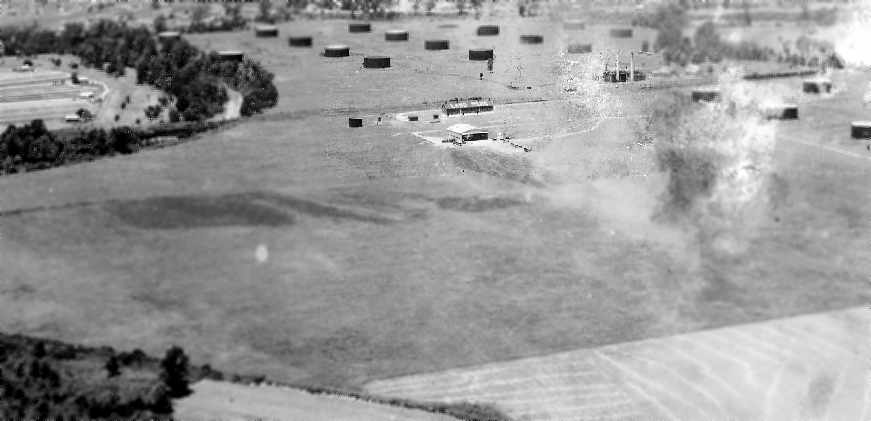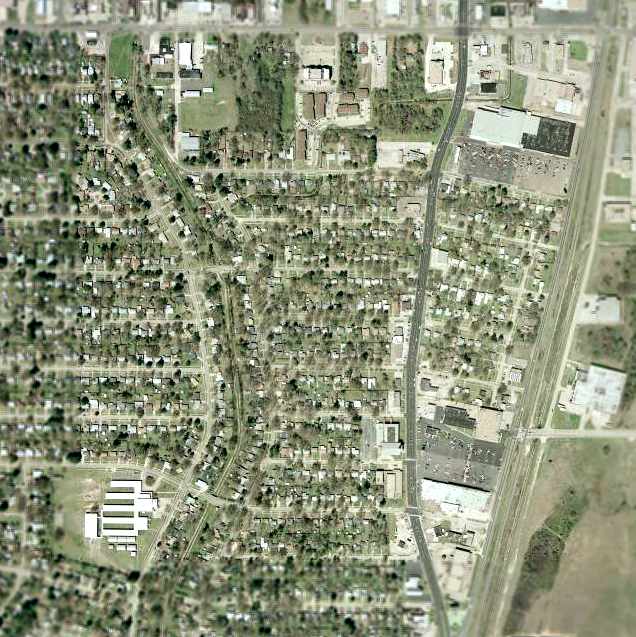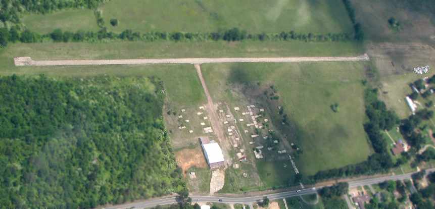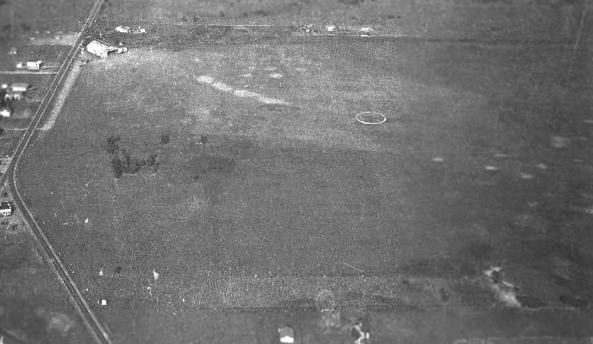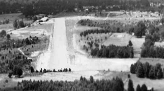A circa 1947-48 aerial view (courtesy of Sam Stuckey) looking north along Ruston's Runway 34.