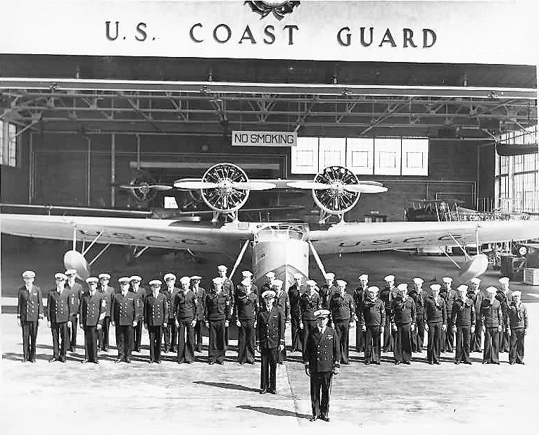 A circa 1930s photo of General Muster of personnel in front of an unidentified flying boat at Coast Guard Air Station Salem (courtesy of Ron Janard).