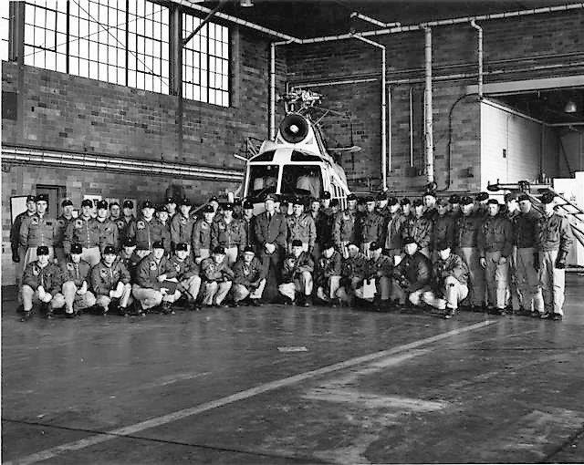 A circa 1960s photo of Coast Gaurd personnel & a Sikorsky HH-52A Seaguard inside the CGAS Salem hangar (courtesy of Ron Janard).
