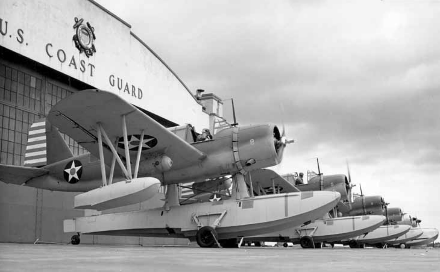 A 1943 photo of 4 Vought OS2U-3 Kingfishers assigned to antisubmarine duty at USCG Air Station Salem (USCG photo from the C.H. Hamilton collection).