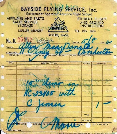 Gilbert Bergeron recalled, "I was taking flying lessons at Tew-Mac in 1954, receiving my private pilots license in 1956.