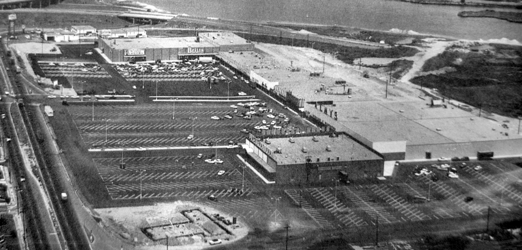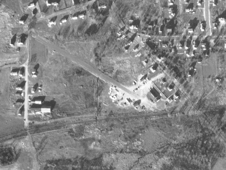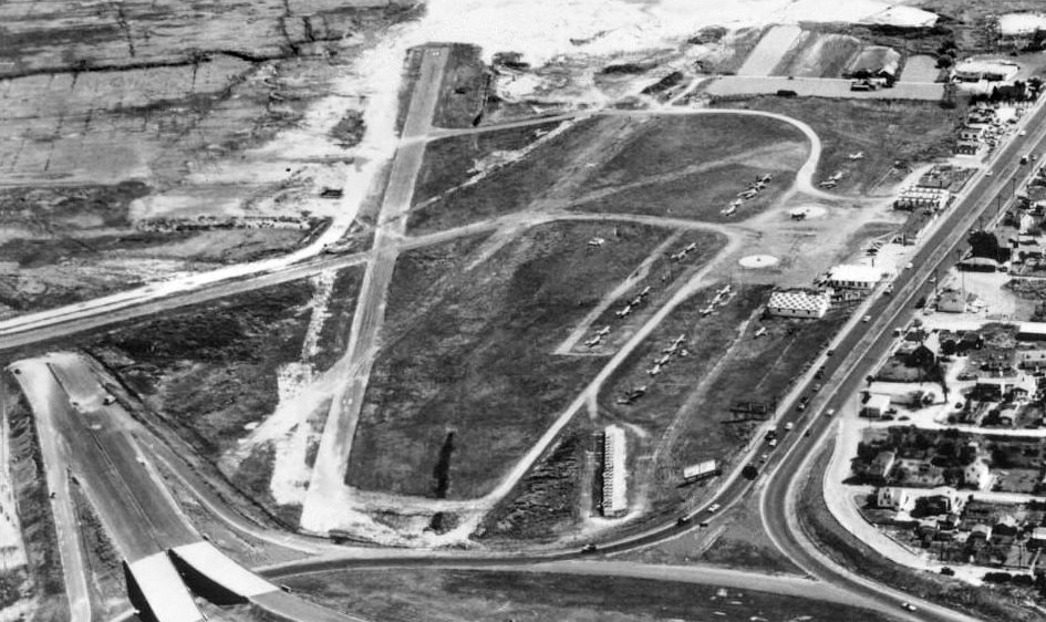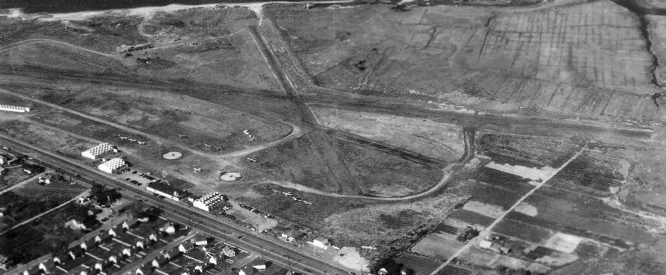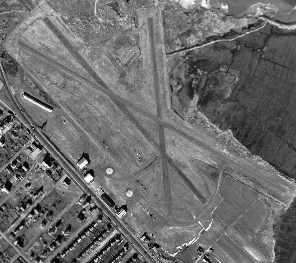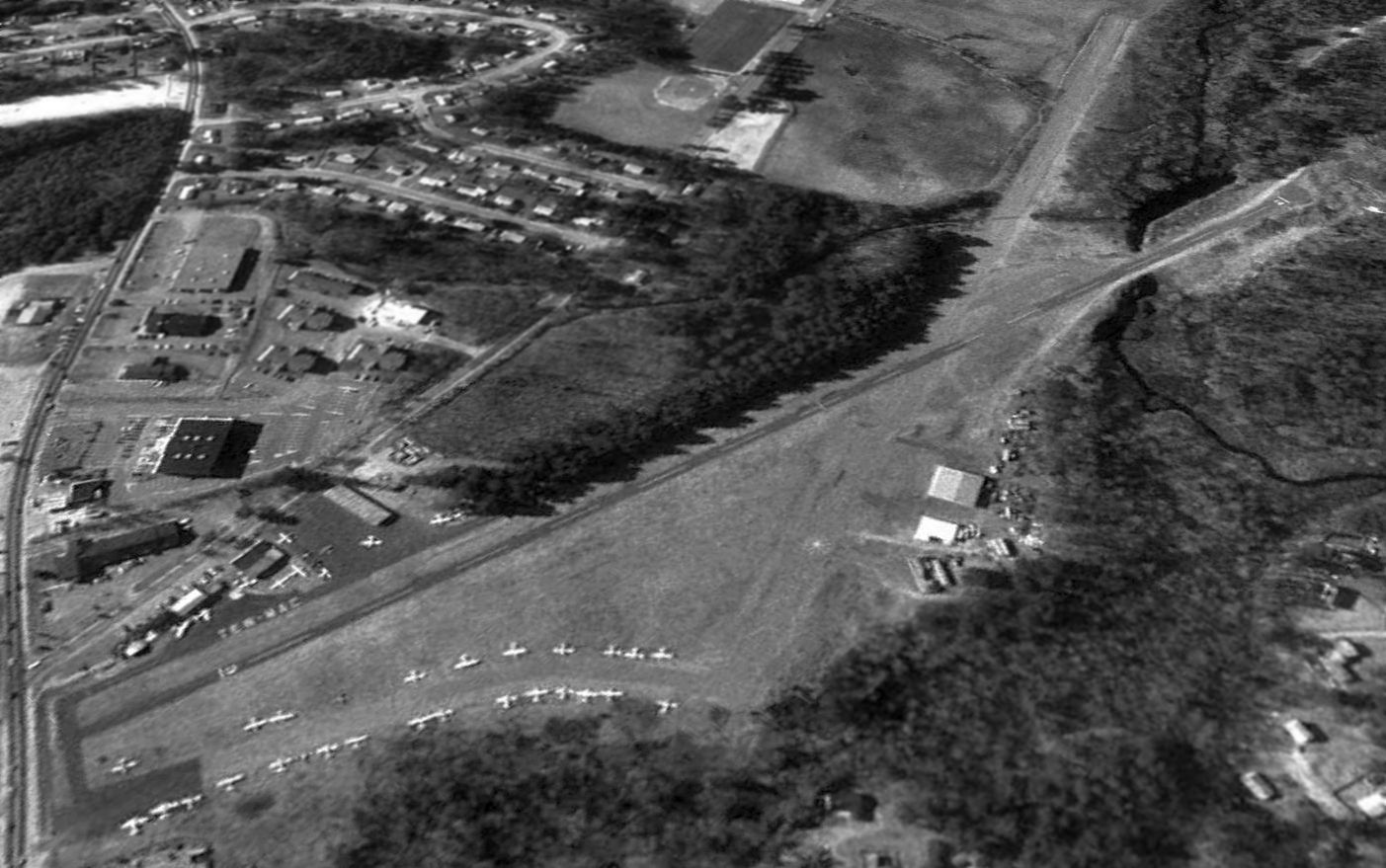 The remains of the northern end of Runway 1/19 were still visible extending beyond the shopping center, at the top-right of the photo.