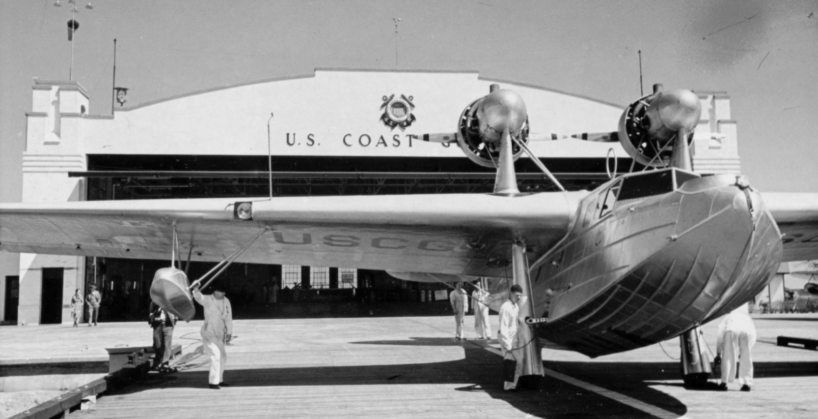 A 1955 aerial view showed one Coast Guard flying boat on the water just off Salem's ramp,