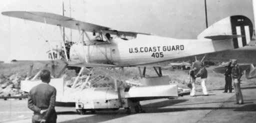 A circa 1935 photo by William Jeffrey of one of Coast Guard Air Station Salem's first two aircraft: #405, a biplane floatplane (model unidentified)