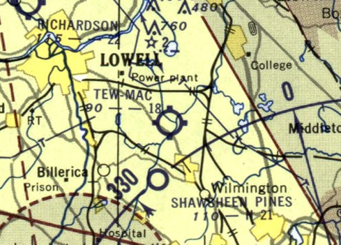 The earliest aeronautical chart depiction of Tew-Mac Airport which has been located was on the May 1953 Boston Sectional Chart.