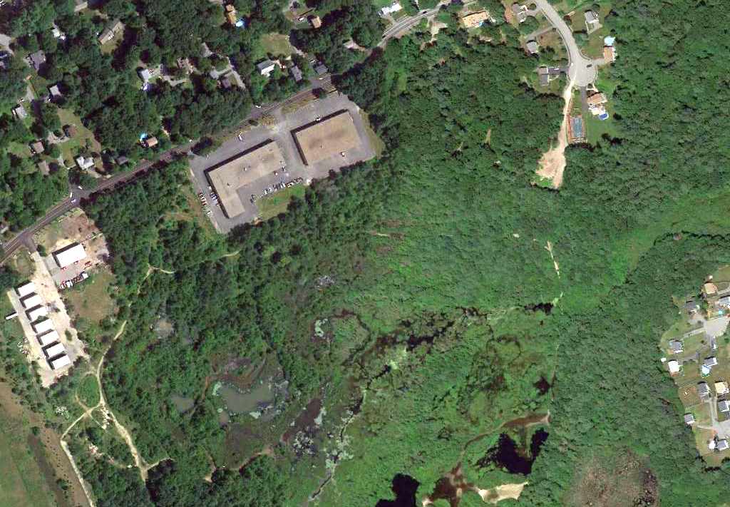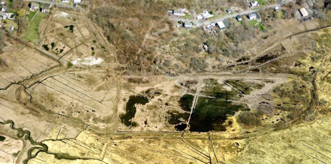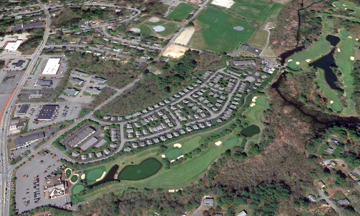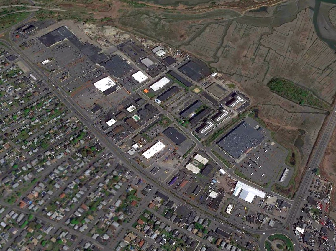 A 2016 aerial view shows the shopping center which occupies the site of Revere Airport.