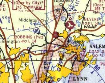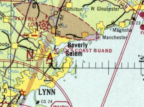 The last aeronautical chart depiction which has been located of CGAS Salem was on the March 1970 Boston Sectional Chart.