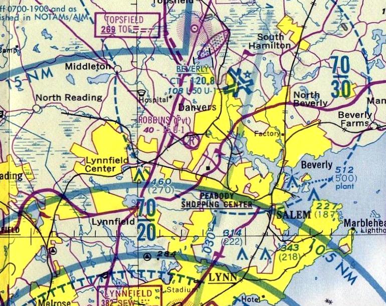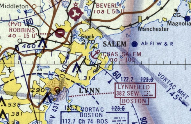 Revere Airport was not depicted at all on the December 1962 Boston Local Aeronautical Chart (courtesy of Mike Keefe).
