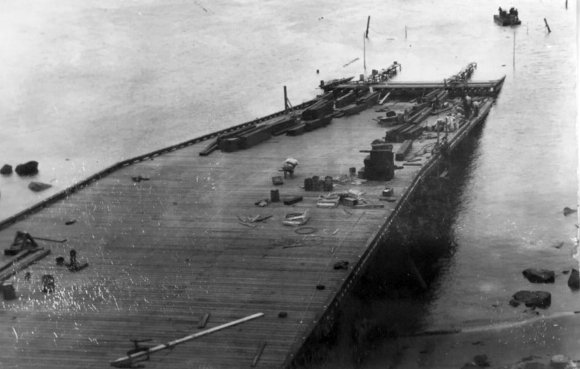 A March/April 1934 photo by William Jeffrey showing the Coast Guard Air Station Salem seaplane ramp under construction (from an album by a Salem Evening News photographer, courtesy of Ron Janard).
