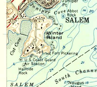 The base was located on a peninsula, Salem Neck, which juts out into Salem Harbor.