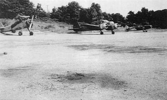 with a single small building at the southwest corner, around which were parked 5 light single-engine planes.