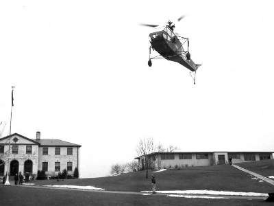 A circa 1952 demonstration of a Sikorsky HNS-1 helicopter at CGAS Salem.