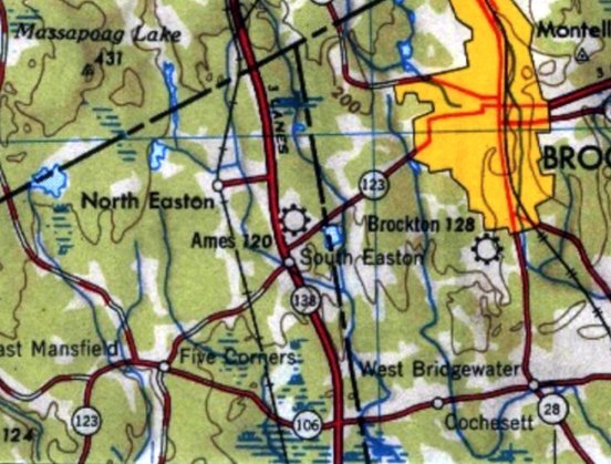 According to the Easton Historical Society, “Ames Field was located near the junction of Route 138 & Belmont Street.