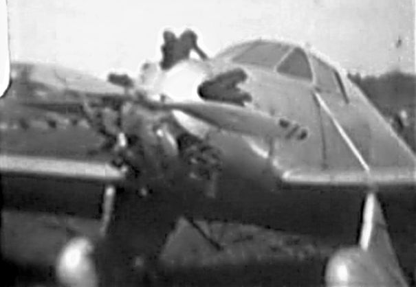 The Major & his passenger were unhurt, but the plane required a new tire, propeller, and wing panel.