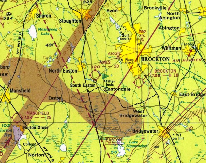 The Ames Flying Field was one of 3 airfields in Easton, and was recognized by the Civil Aeronautics Administration.
