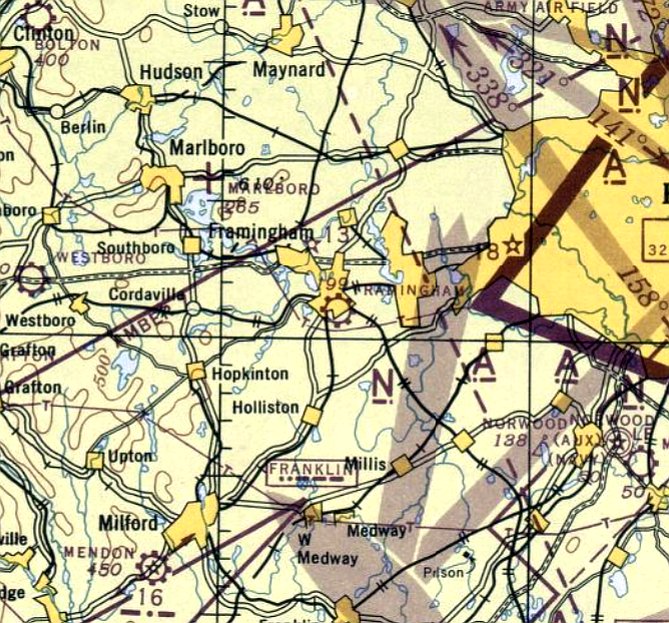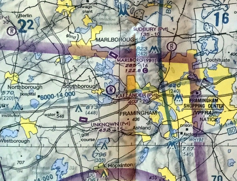 The only aeronautical chart depiction which has been located of Kallander Field was on the May 2009 Boston Terminal Chart.
