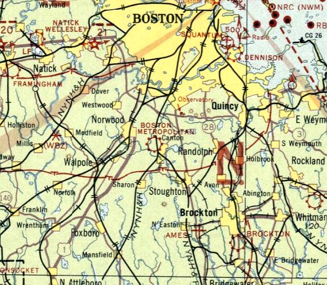 The last aeronautical chart depiction which has been located of Boston Metropolitan Airport was on the May 1956 Boston Sectional Chart.