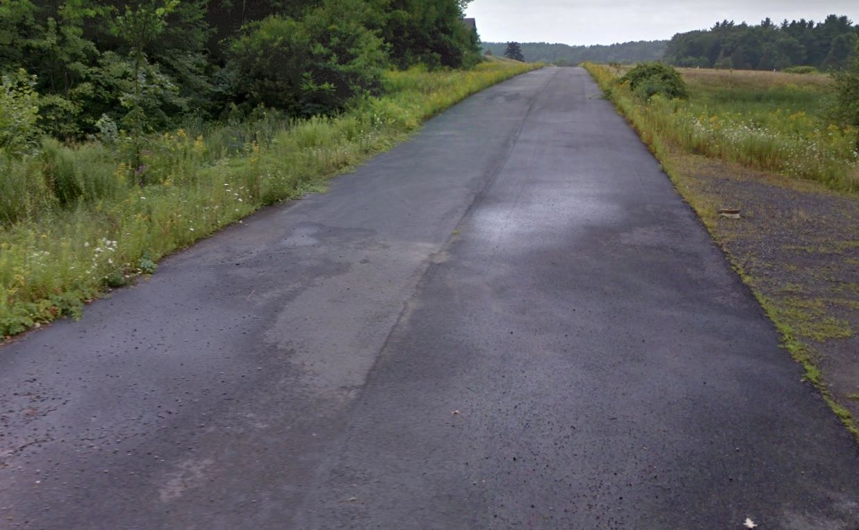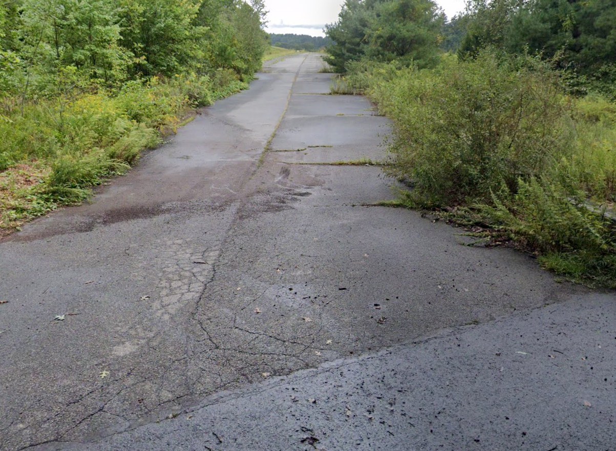 A 1999 photo by Peter Kodis looking along the remains of a runway at Boston Metropolitan Airport.