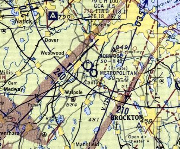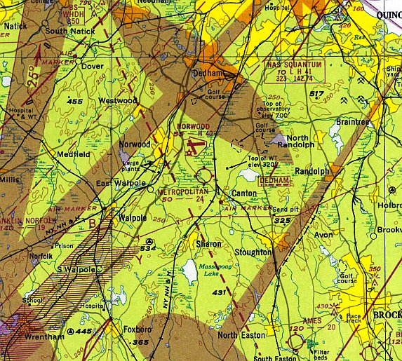 It sits only a mile directly under the final approach path to Norwood Airport's Runway 35.