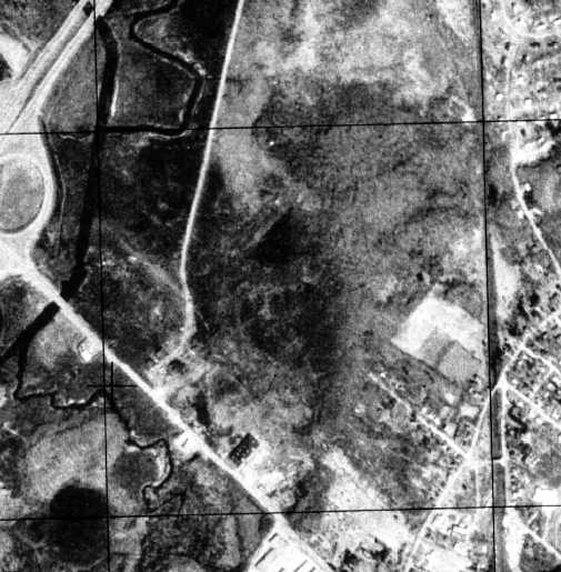 A 1995 USGS aerial view looking northeast showed the former Boston Metropolitan Airport runways were still barely recognizable,