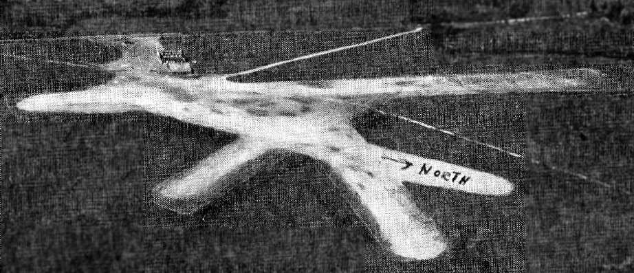 The 3 hangars still remained, though, and the outline of all 4 runways still remained recognizable.