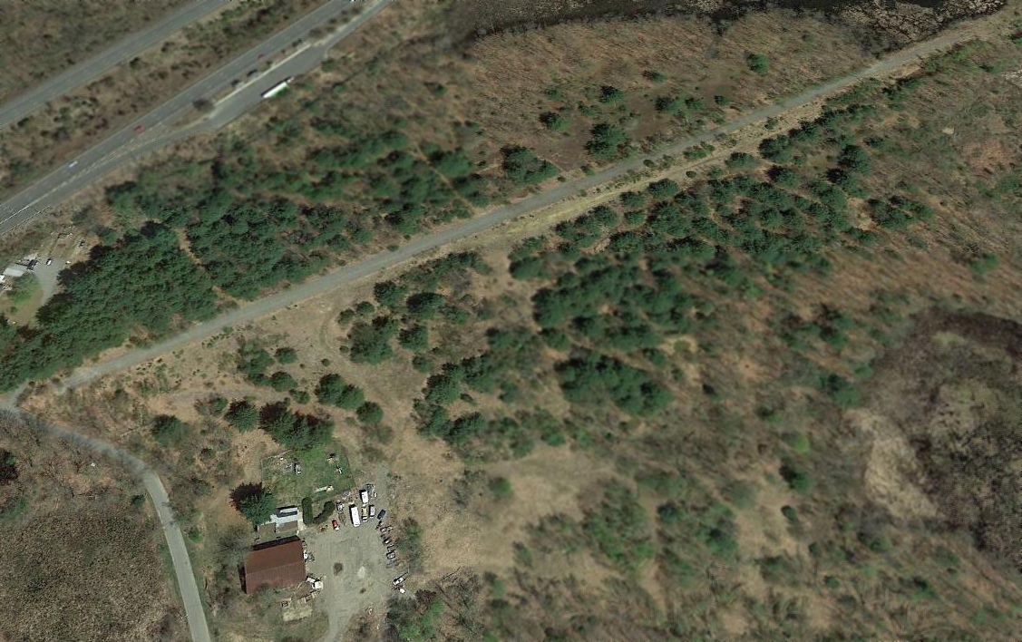 A 2024 aerial photo looking northeast showed the only trace remaining of Groton Airport being the overall shape of the clearing.