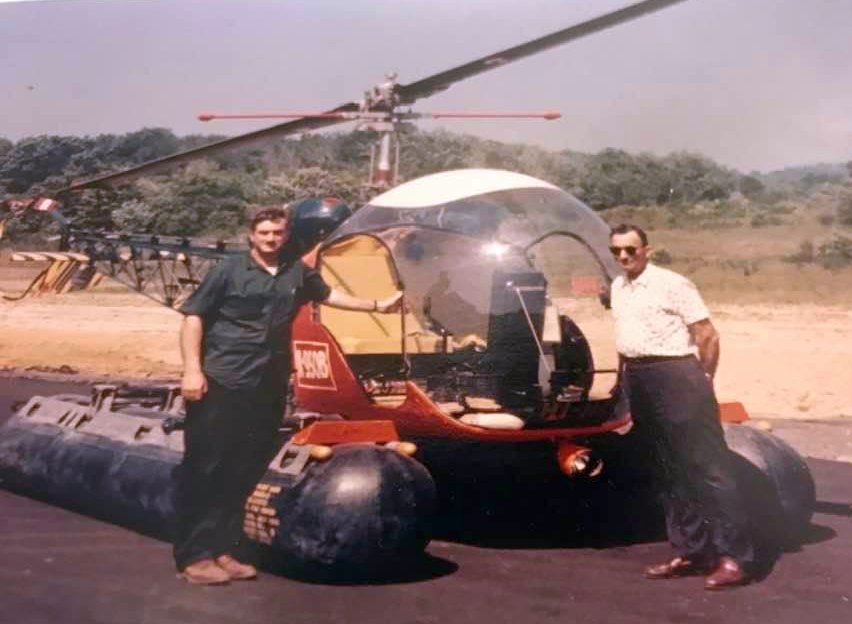 The earliest photo which has been located of Haverhill Riverside Airport was a 1964 photo (courtesy of Ron Janard) of Red Slavit & George “Chip” Germaine in front of a Bell 47 G-2A helicopter with fixed floats.