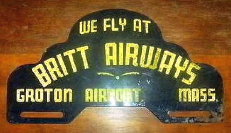 An undated license plate sign promoting Britt Airways at Groton Airport (courtesy of Anthony Fusaro).