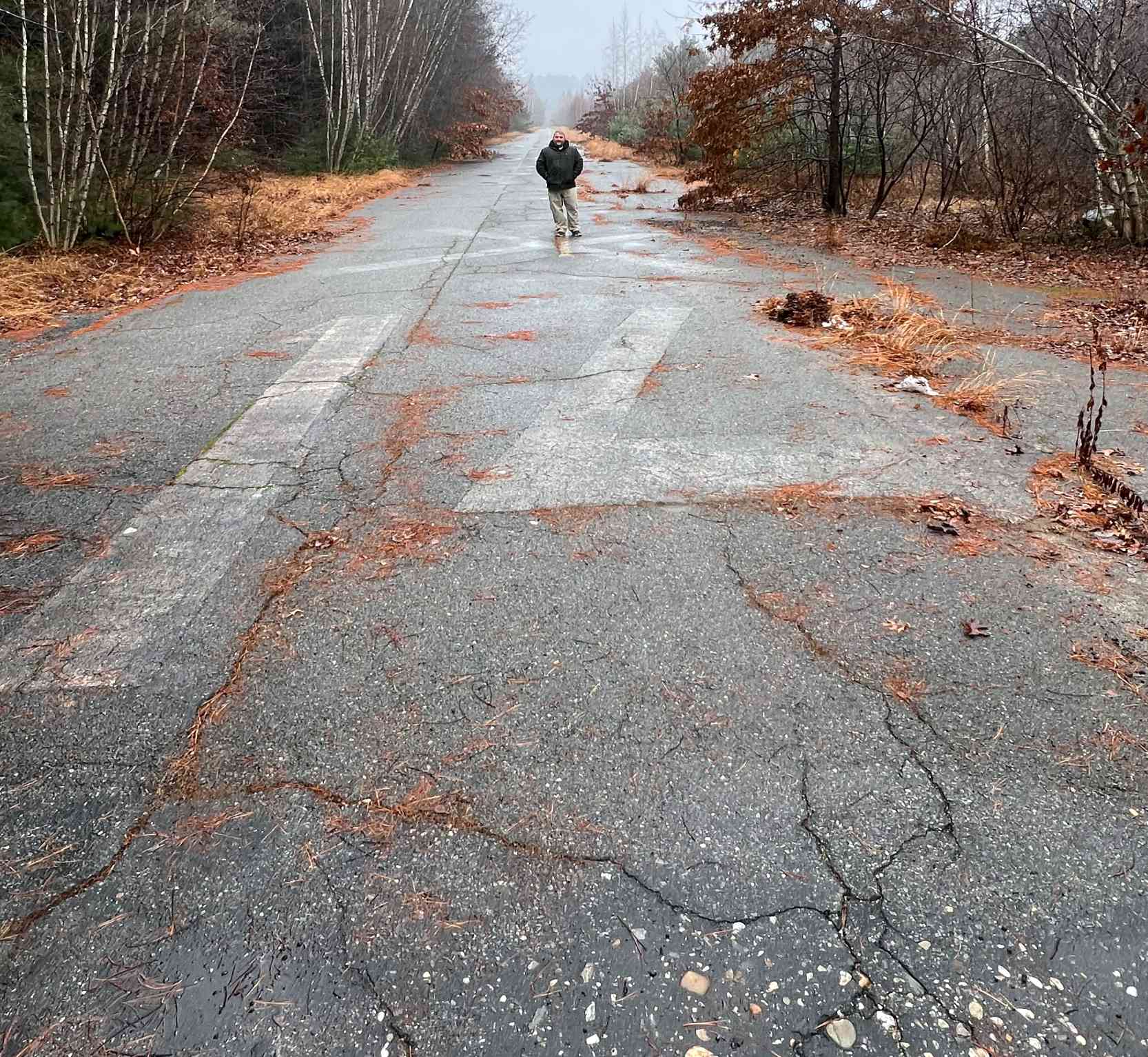 A 1/2/22 photo of Neal Ivester on the remains of Haverhill-Dutton Airport's Runway 14.