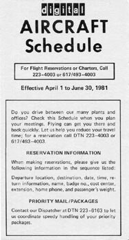 The cover of a 4/1/81 DEC Aircraft Schedule (courtesy of Craig Morris of aviationworldcollectibles.com, used with permission).