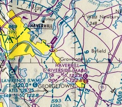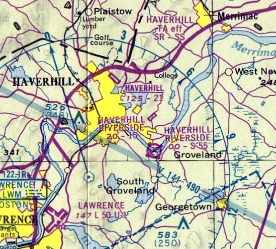 Haverhill Riverside Airport, as depicted on the 1960 Boston Local Aeronautical chart (courtesy of Mike Keefe).