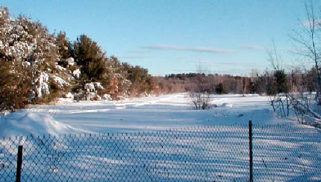 A 2002 photo by Jonathan Westerling of a snowy scene, looking along the former runway at Haverhill Dutton Airport.