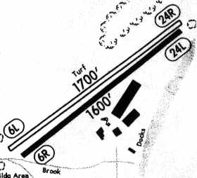 a 1,600' asphalt Runway 6R/24L & a 1,700' turf Runway 6L/24R.