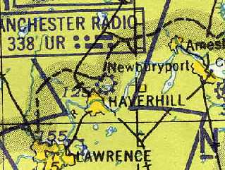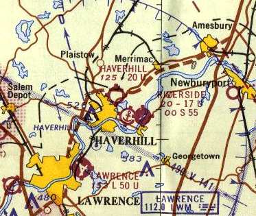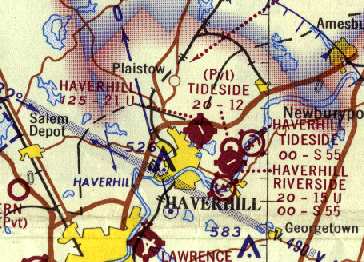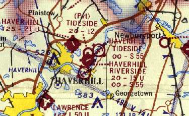 The earliest depiction which has been located of Haverhill Riverside Airport was on the 1960 Boston Local Aeronautical chart (courtesy of Mike Keefe).