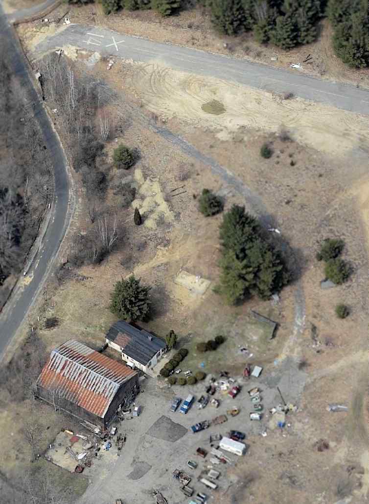 A circa 2011 aerial view looking northeast along the remains of Haverhill Dutton Airport's Runway 32, during an off-airport training helicopter landing.