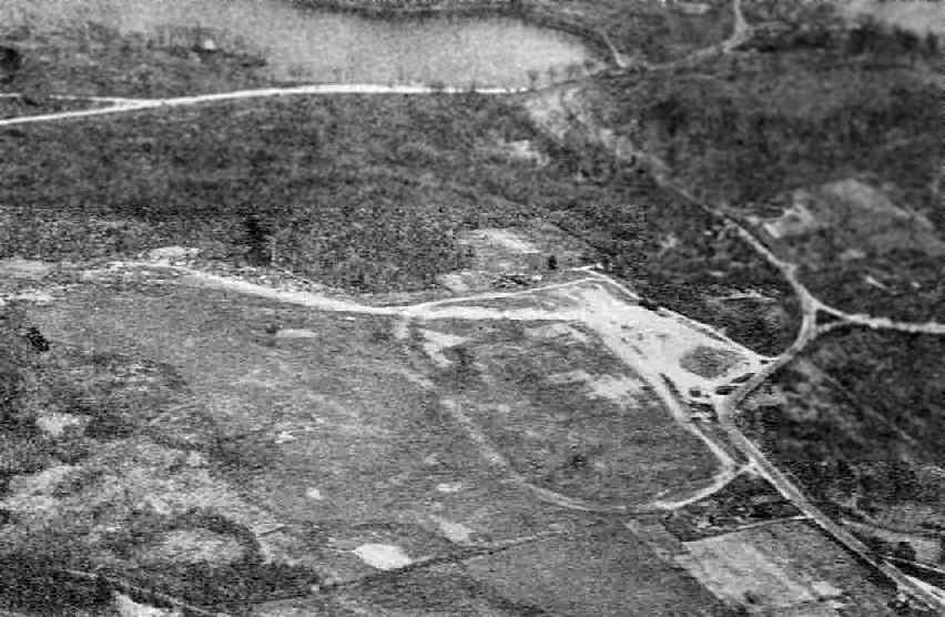 The earliest photo which has been located of Groton Airport was a circa 1951 aerial view looking southeast by Leroy Johnson (courtesy of Anthony Fusaro),