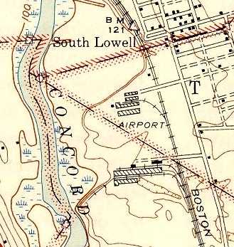 According to the Groton Industry Exhibit (courtesy of Anthony Fusaro), “Britt Airway, in 1942, bought land in the Northwest part of town & established the first airport in Groton near the Townsend & Pepperell lines.