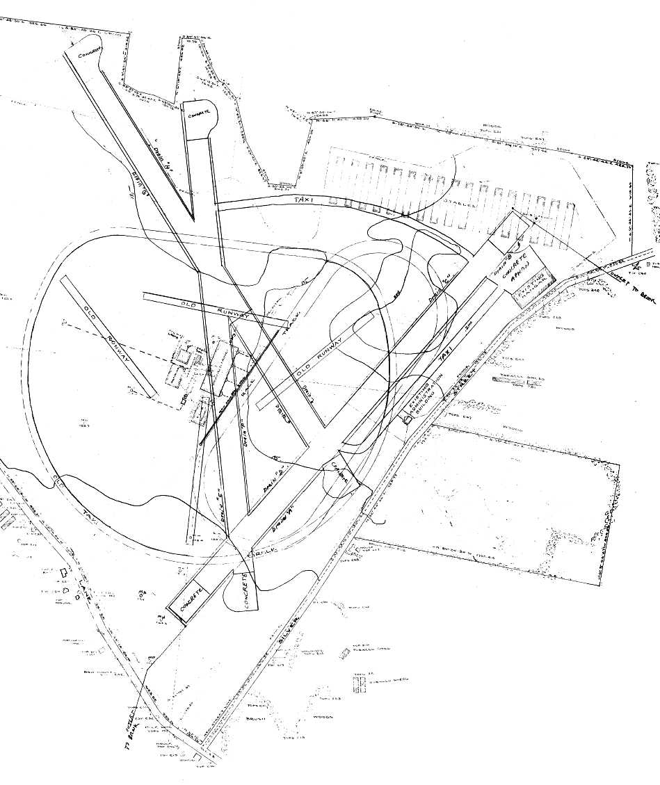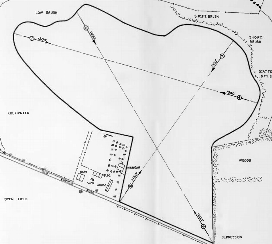 It described the field as consisting of a 140 acre irregularly-shaped sandy field, with 2 brick & wood hangars.