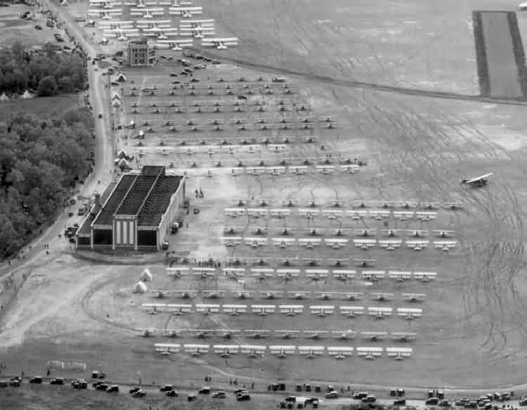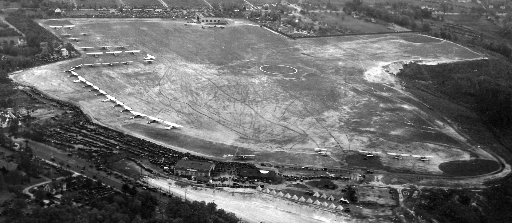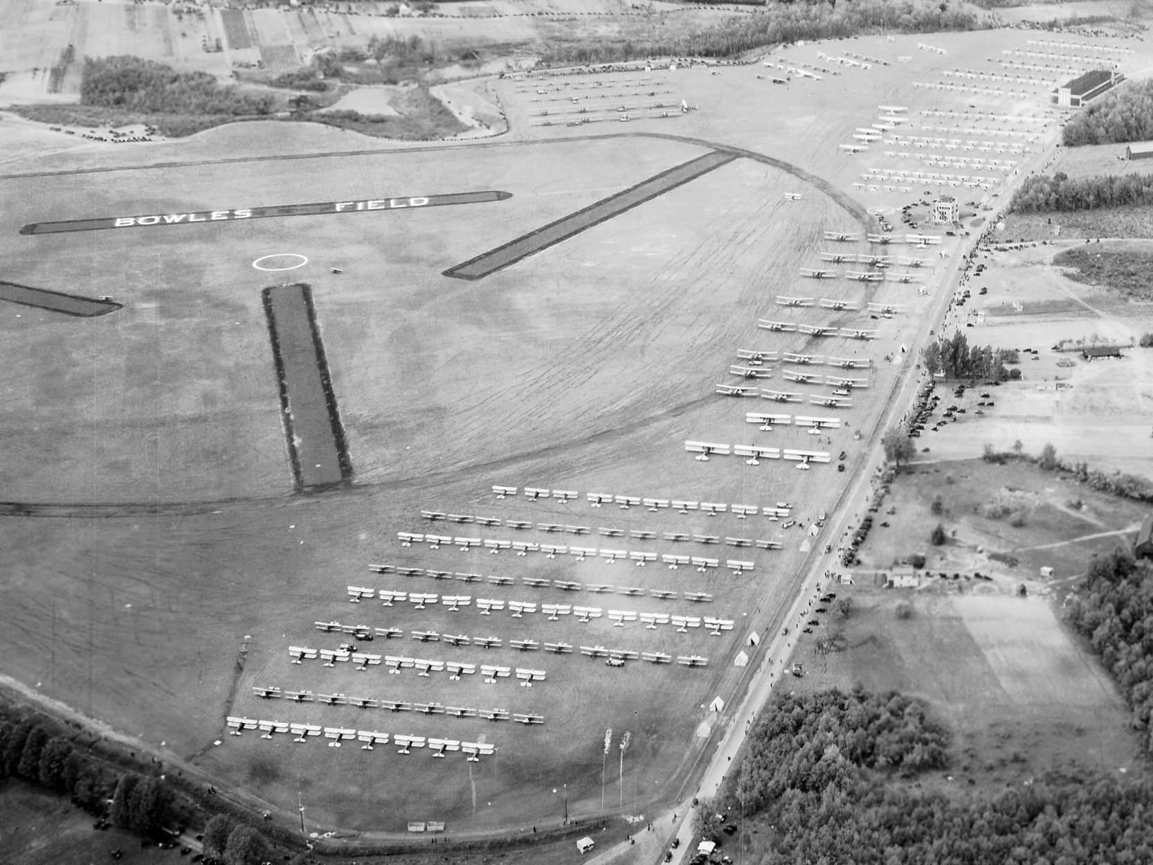 A circa 1930s aerial view looking northeast at Springfield Airport during a mass gathering of aircraft & spectators (courtesy of Lowell Scott).