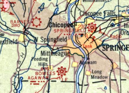 The last aeronautical chart depiction which has been located of Springfield Airport was on the November 1953 Albany Sectional Chart.